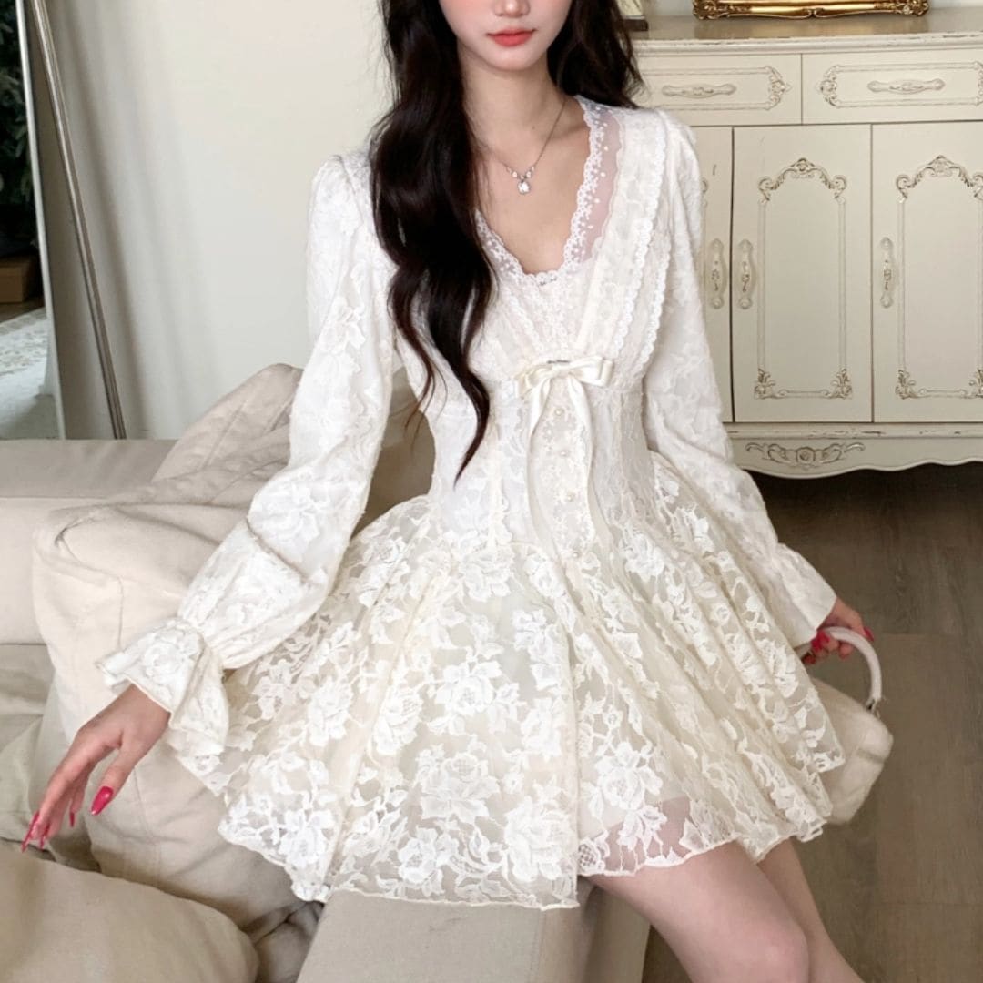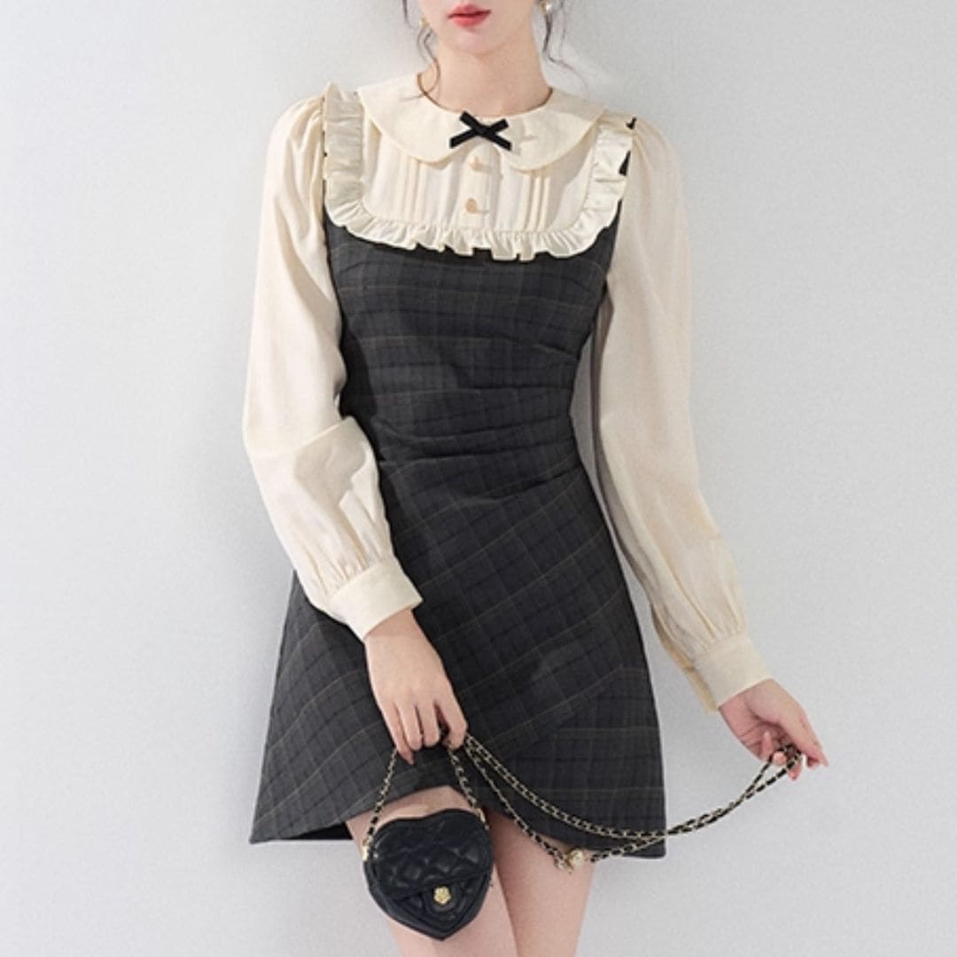 カメリアブローチブラウス×フリルスカート(NO.071004)