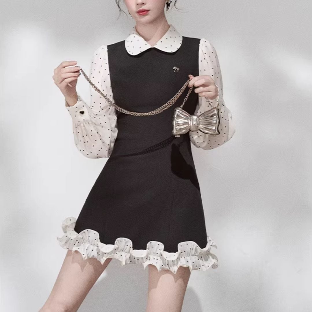 ドットフリルロングスリーブワンピース(NO.080205)