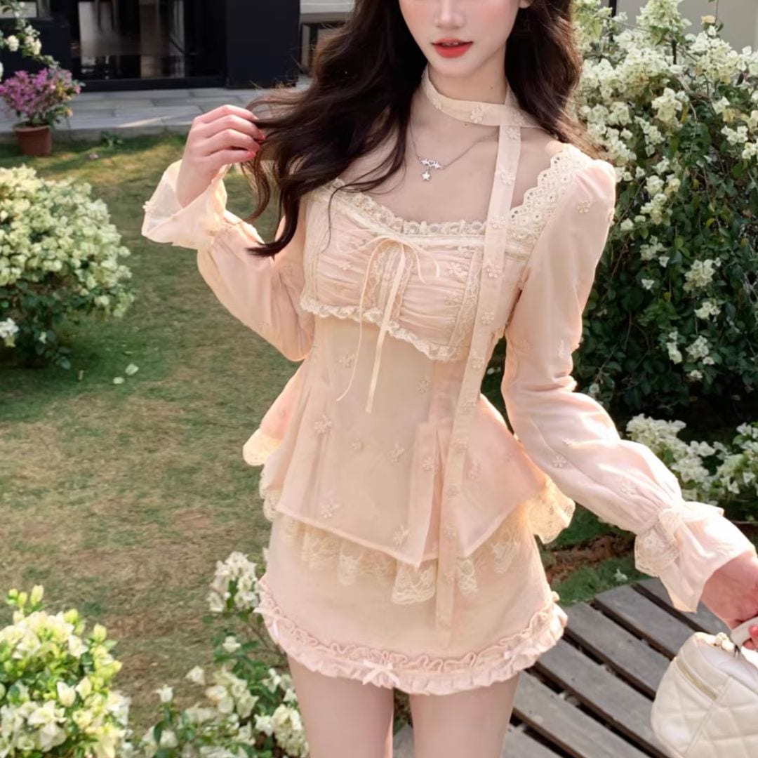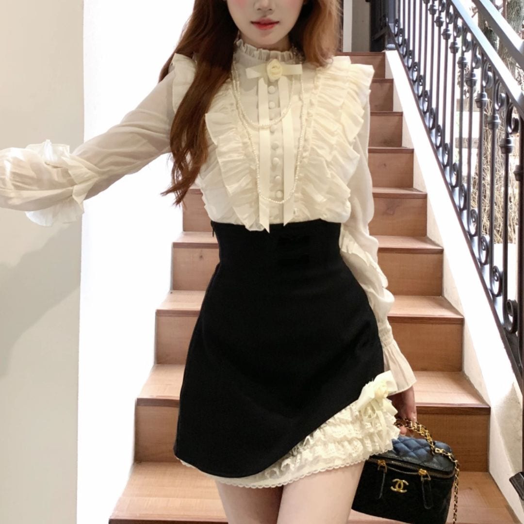 カメリアブローチブラウス×フリルスカート(NO.071004)