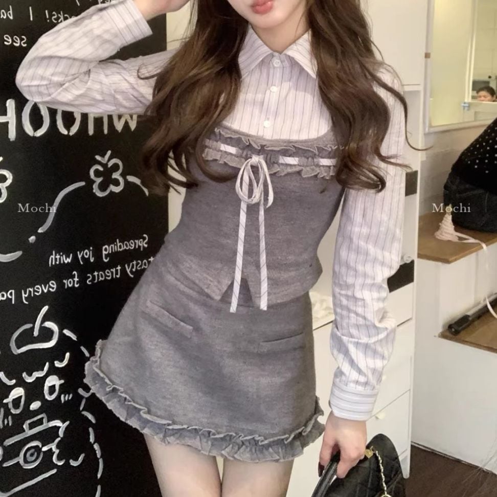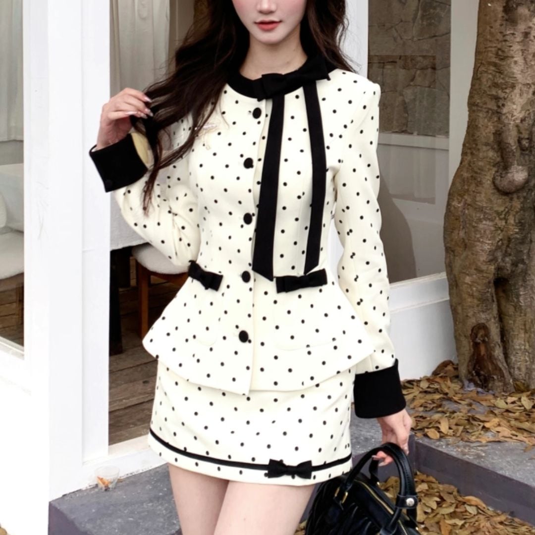 ドット肩あきブラウス×ビジュープリーツスカート(NO.060812)