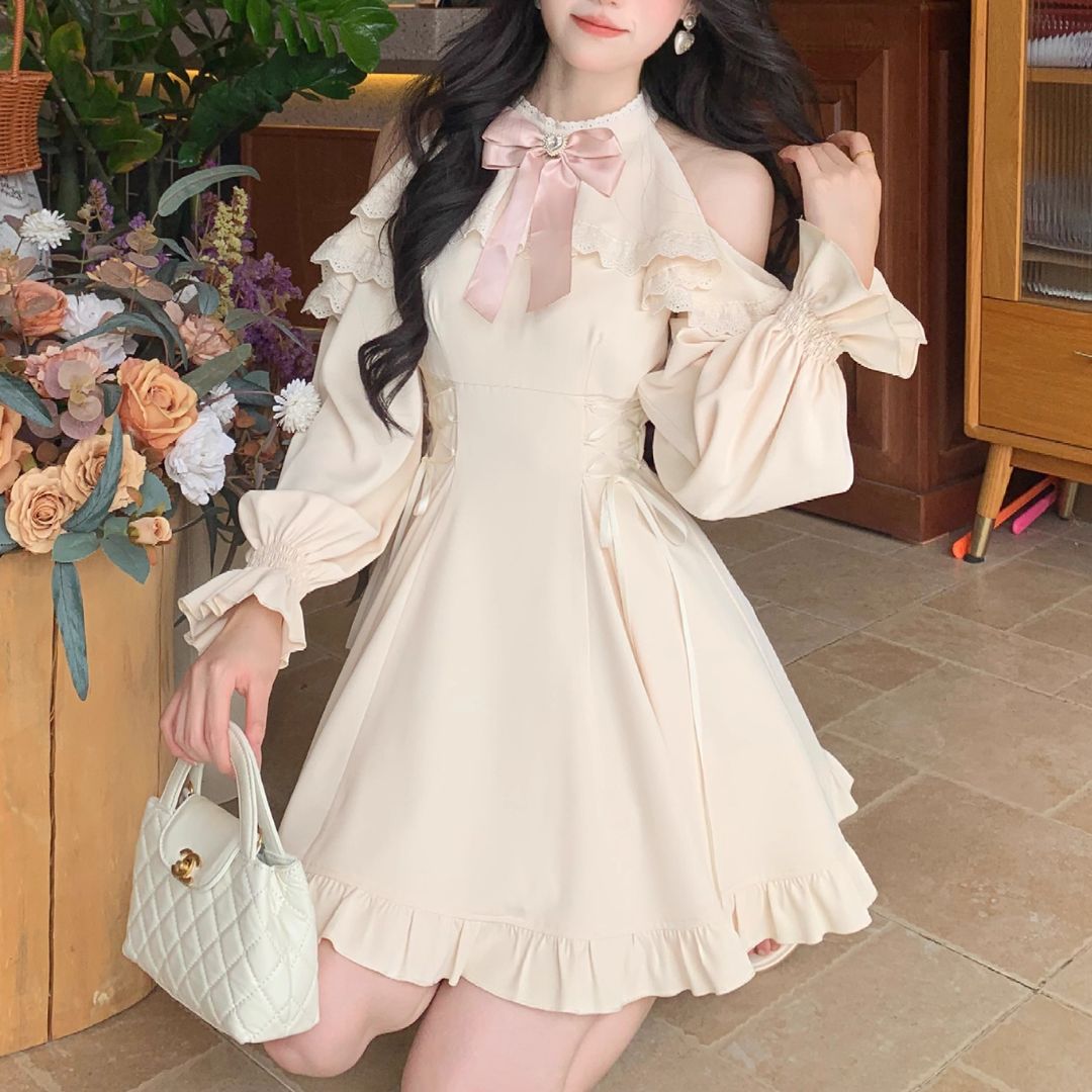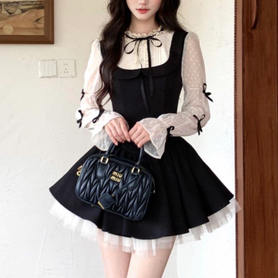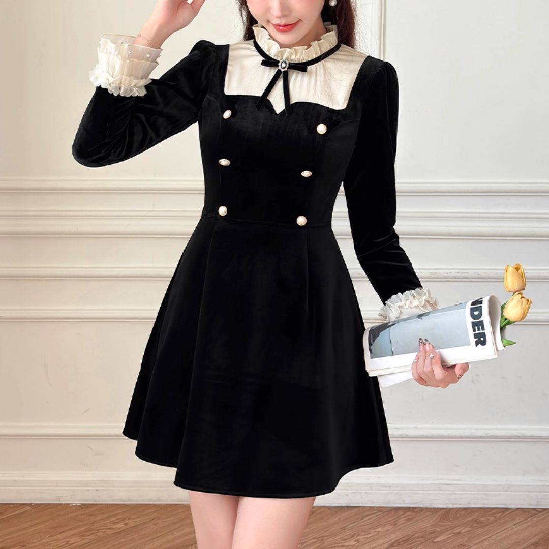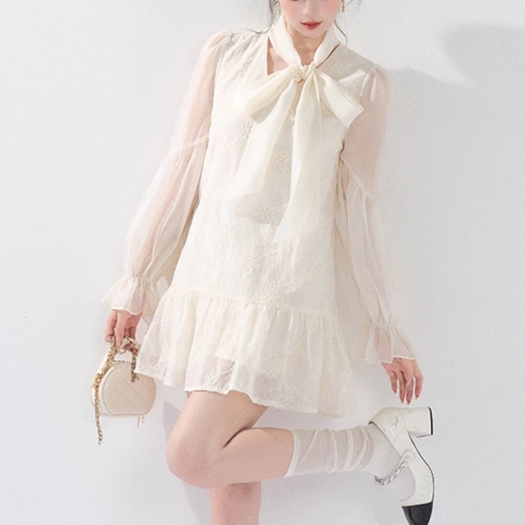 リボン柄ボウタイドッキングワンピース(NO.070812)