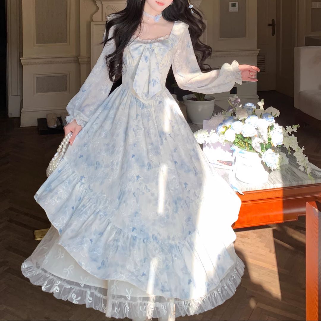 リボンギンガムチェックワンピース(NO.060410)【BLUE】