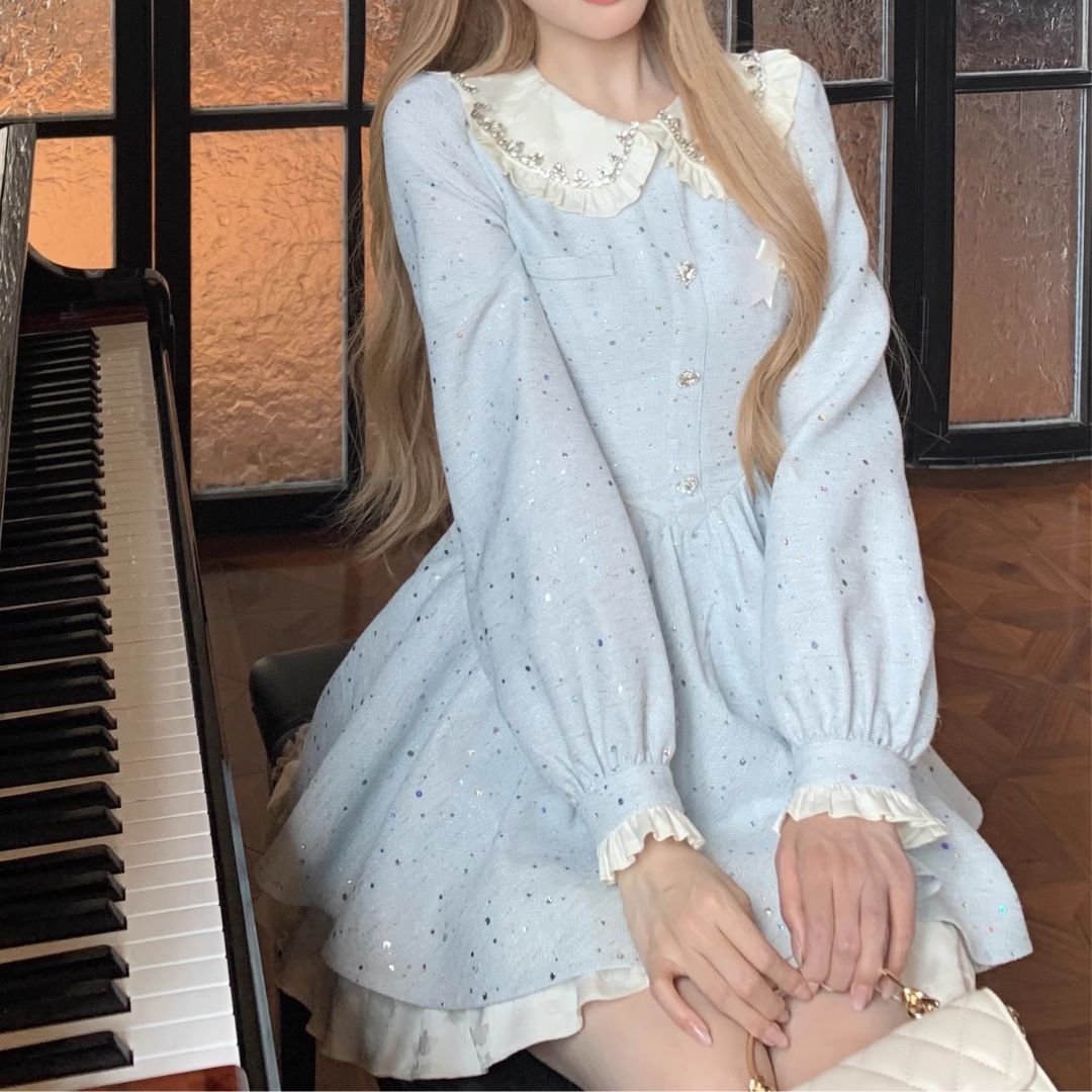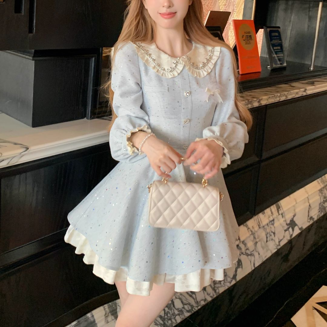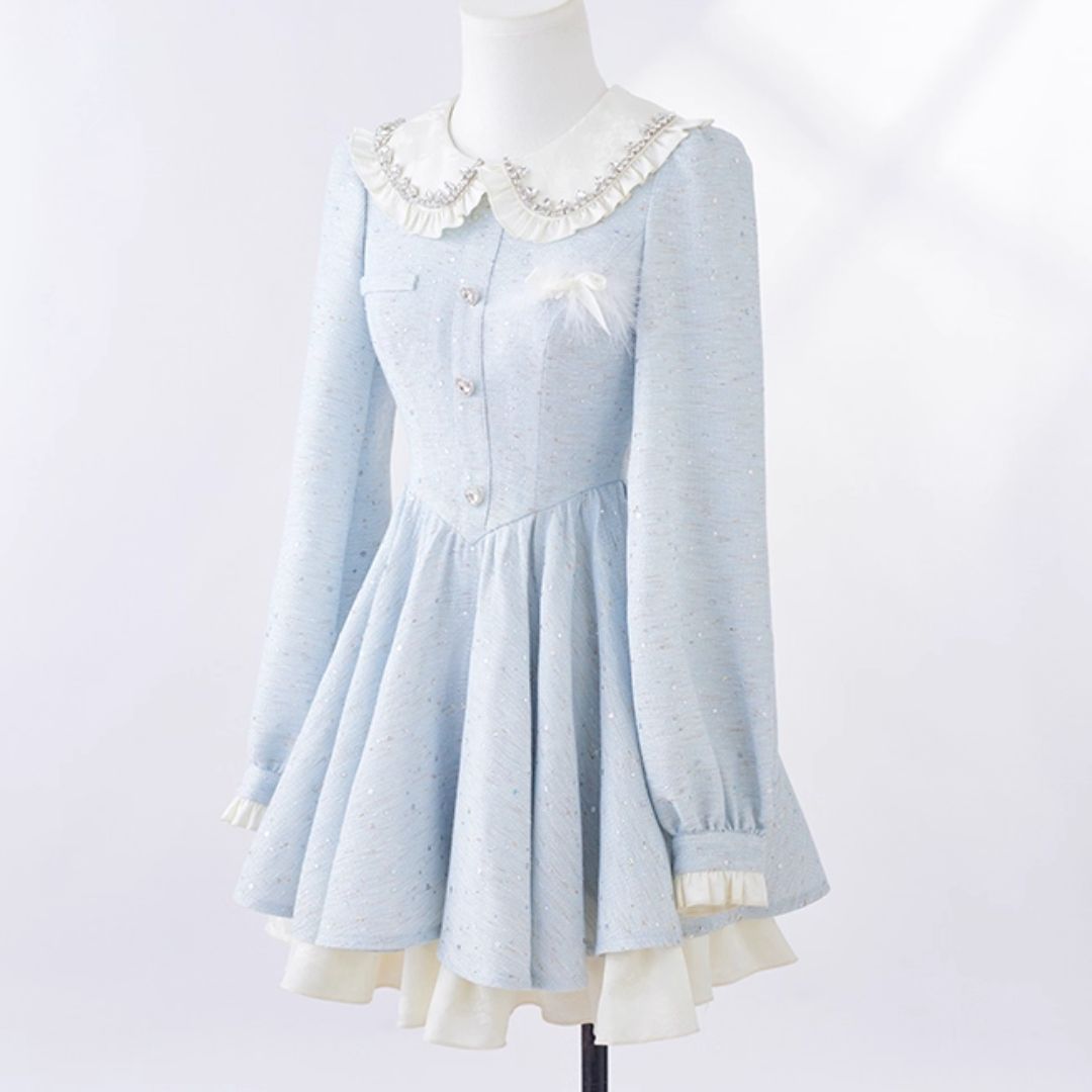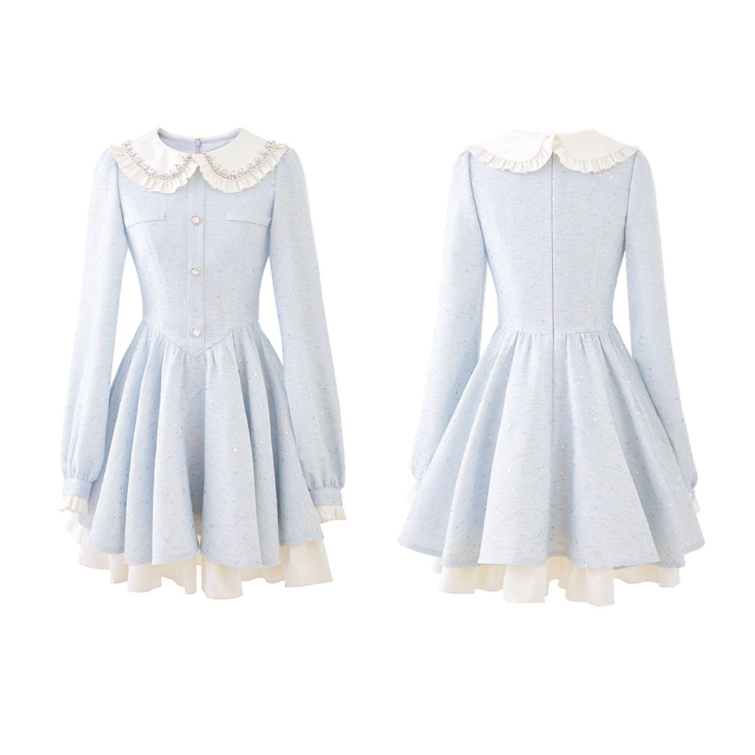 スノーブルービッグカラーワンピース♡