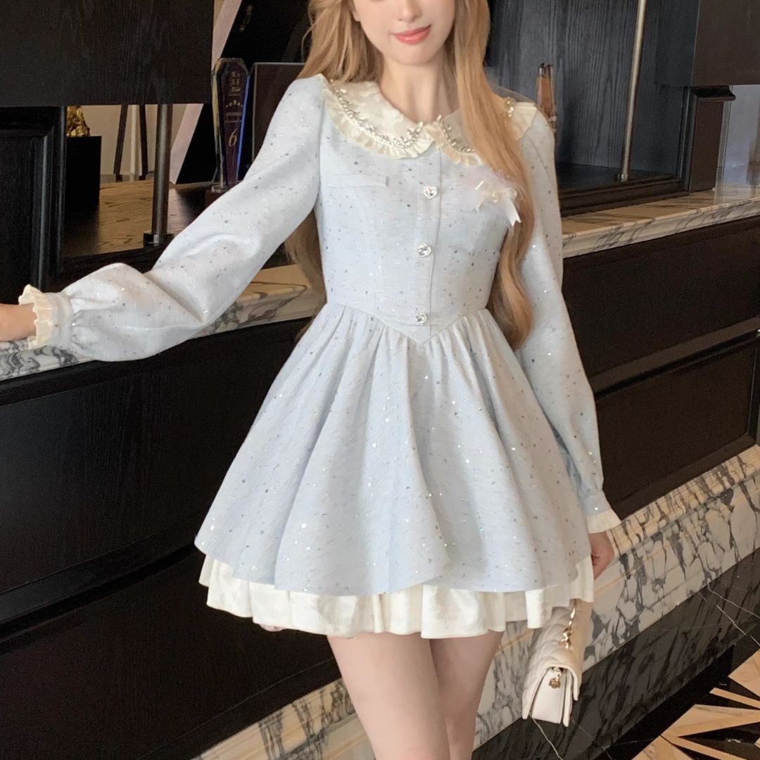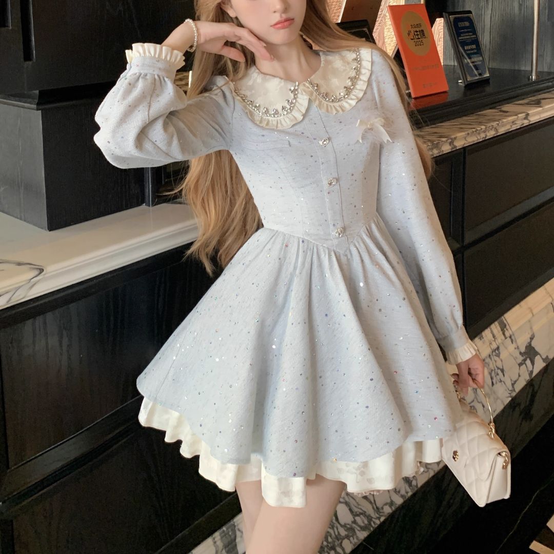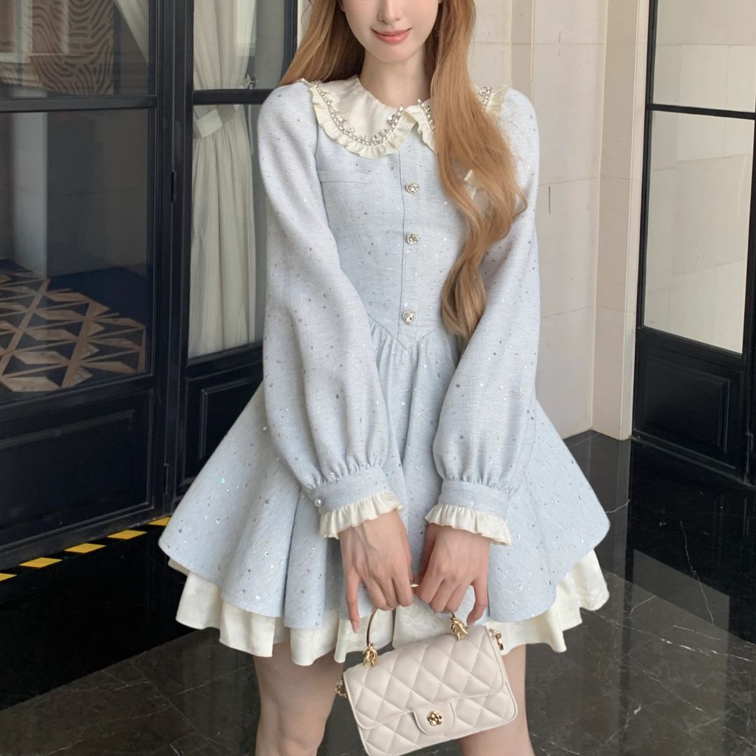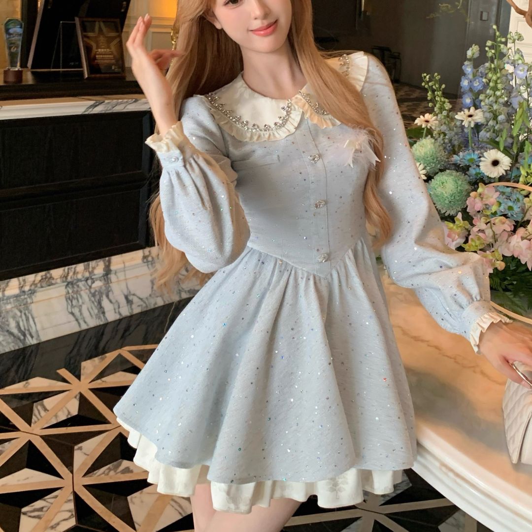 スノーブルービッグカラーワンピース♡