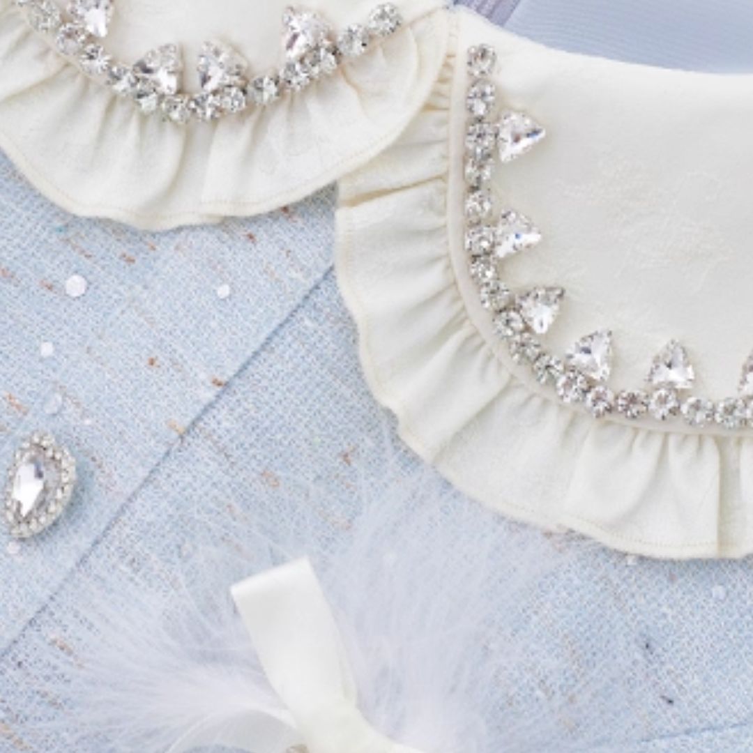 ビジューのついた大きめの襟で