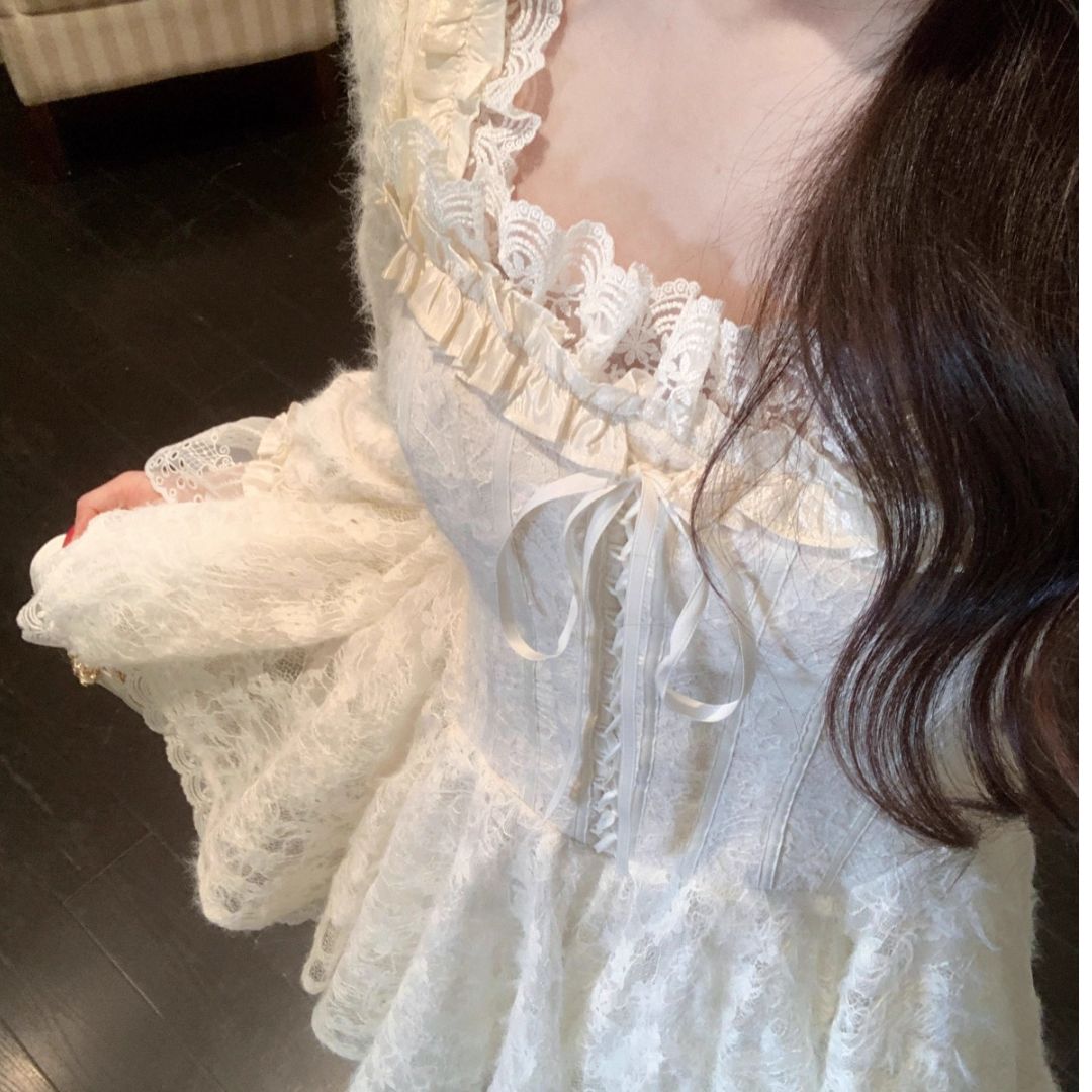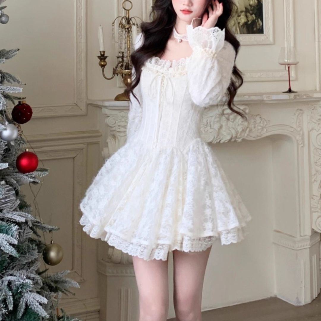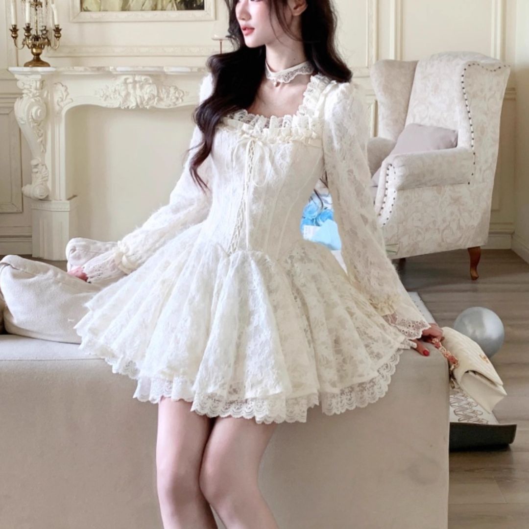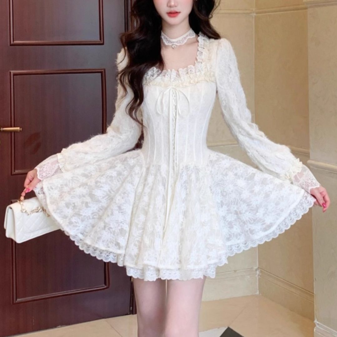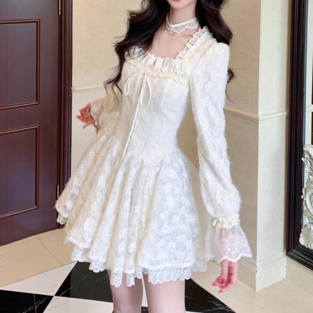 スクウェアネックレースワンピース