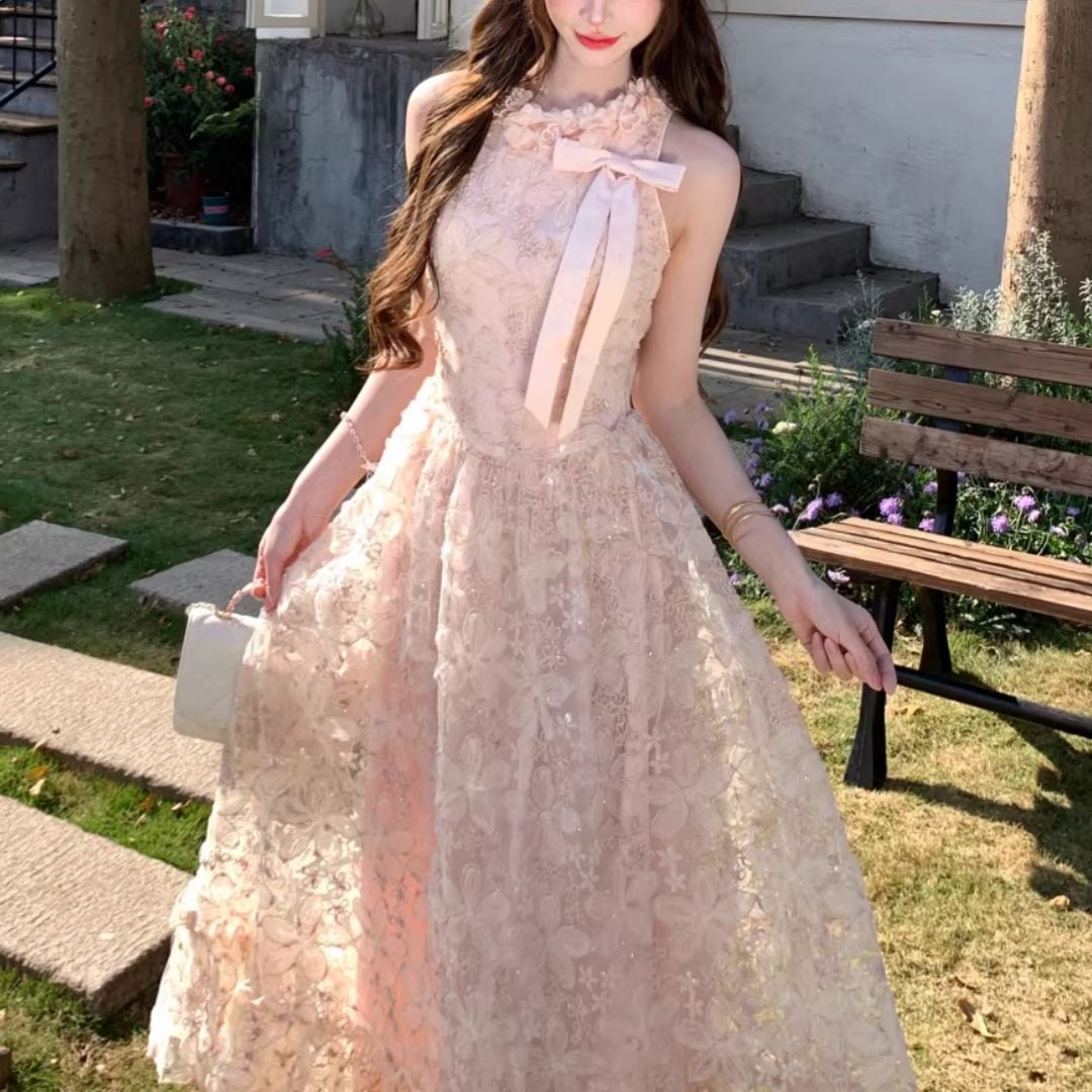 ピンクフラワーロングワンピース